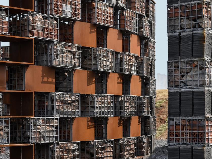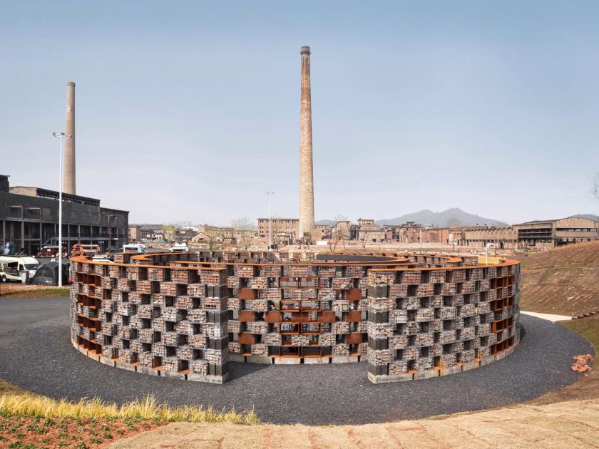 Uno degli aspetti più significativi del progetto riguarda l’uso dei materiali. L’intero complesso è costruito utilizzando mattoni, tegole e frammenti recuperati dagli edifici industriali esistenti, trasformando lo scarto in risorsa.