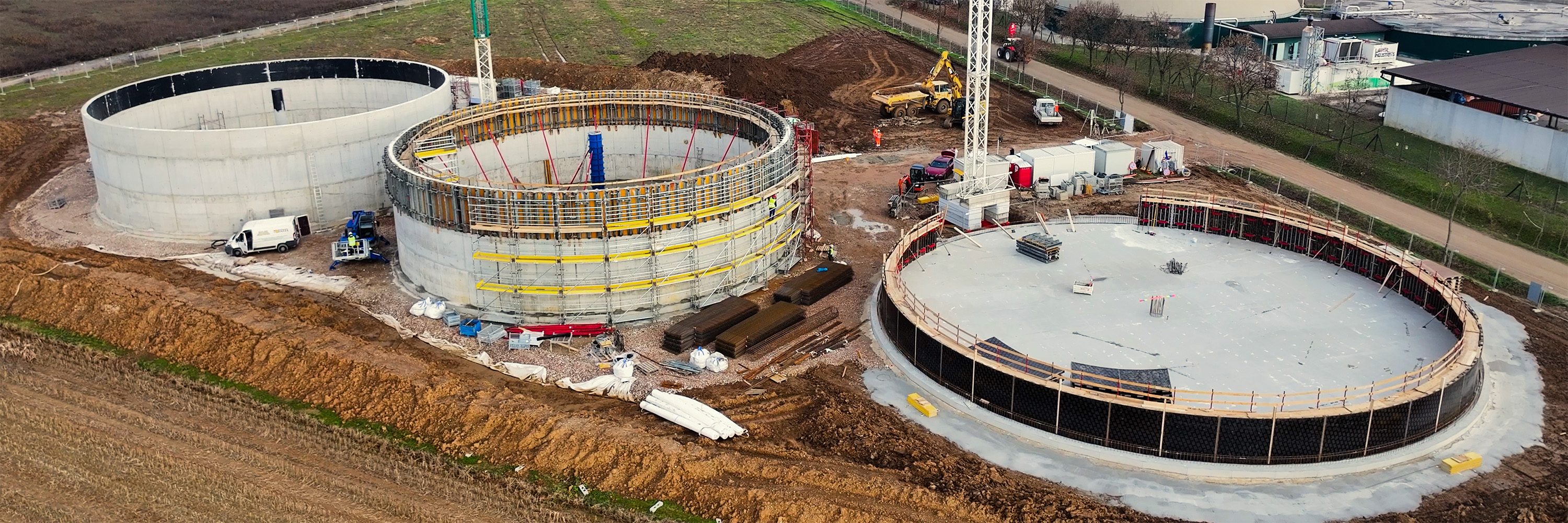 Elemento centrale dell'intervento è il ruolo di Adriacos, impegnata nella realizzazione delle opere civili e strutturali del progetto. La riconversione dell'impianto richiede infatti un importante lavoro di costruzione: nuovi fermentatori in calcestruzzo armato, vasche di stoccaggio del digestato, opere di fondazione, aree di carico delle biomasse, tettoie di protezione per i reflui zootecnici e infrastrutture a servizio della linea di upgrading del biometano. Adriacos opera in un contesto ad alta complessità tecnica, traducendo le scelte progettuali in opere durevoli, sicure e funzionali, fondamentali per l'affidabilità complessiva dell'impianto.