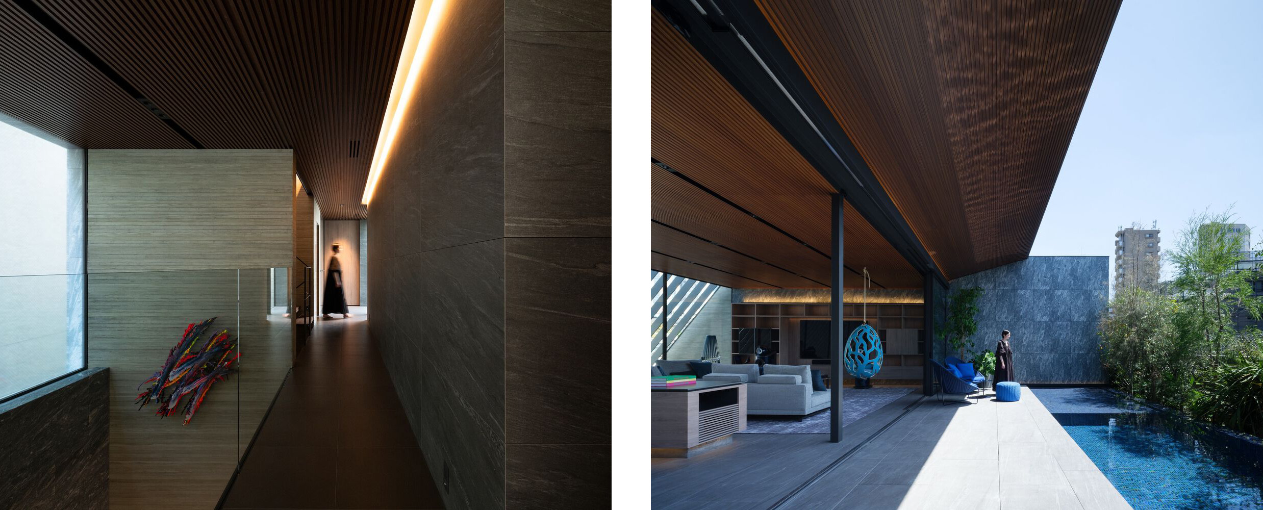 Con Stealth, Kurosaki realizza un progetto che gioca sul contrasto tra il nascondere e il rivelare. Una casa che dall’esterno appare quasi inaccessibile, e che solo una volta attraversata mostra la sua anima fatta di fluidità, apertura e lusso discreto.