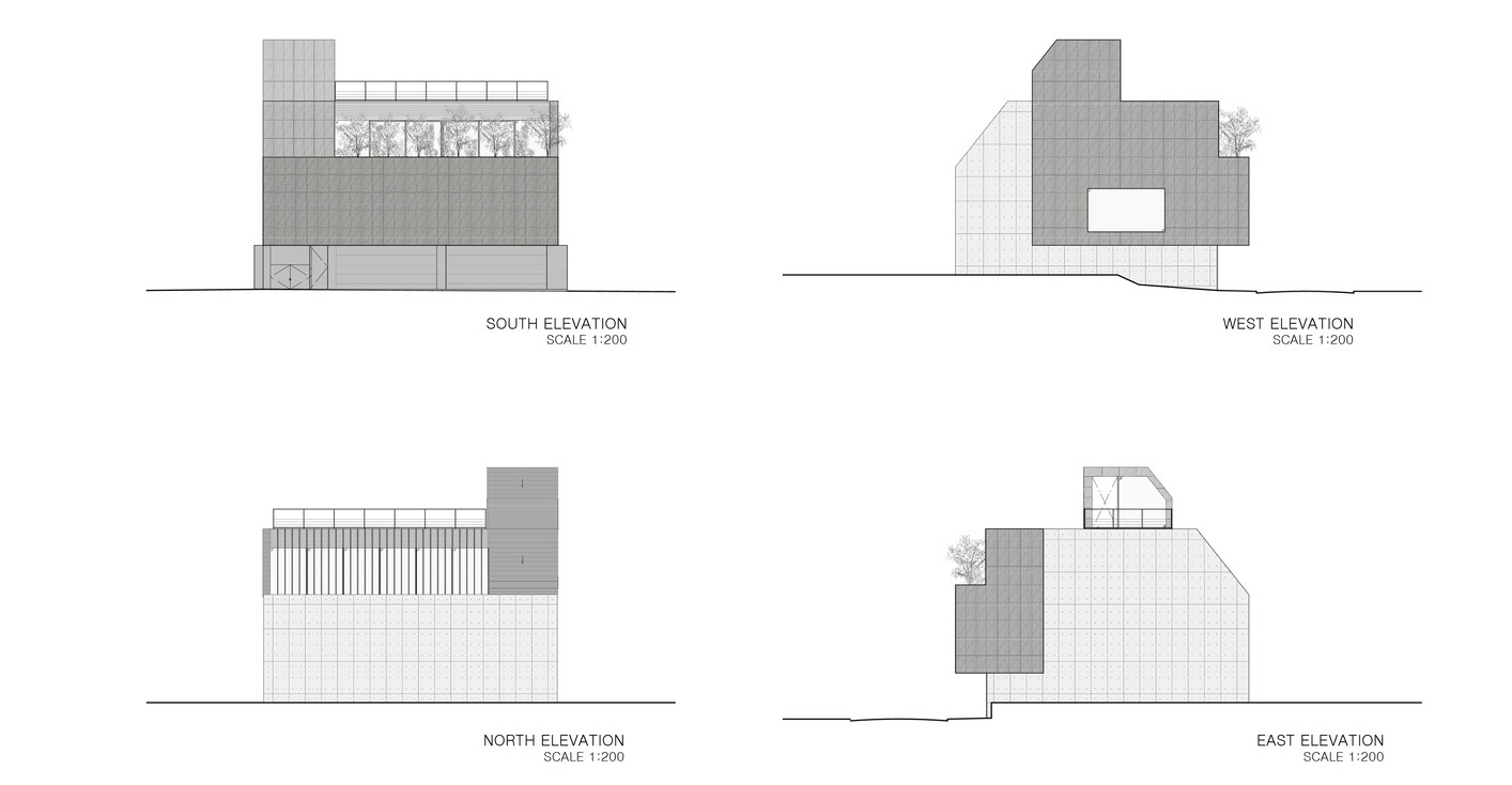 Il lotto su cui sorge Stealth misura 313,83 metri quadrati, con una superficie edificata di 214,92 metri quadrati e uno sviluppo complessivo su più livelli: un piano interrato di 106,09 metri quadrati, un piano terra di 195,41 metri quadrati, un secondo livello di 170,99 metri quadrati, un terzo piano di 134,65 metri quadrati e un attico di 9,36 metri quadrati. La superficie totale raggiunge così i 616,50 metri quadrati, distribuiti in una sequenza di spazi che alternano zone intime e protette ad aperture inattese verso l’esterno.