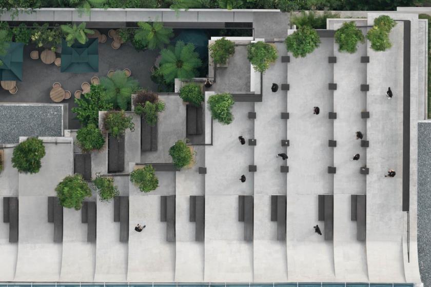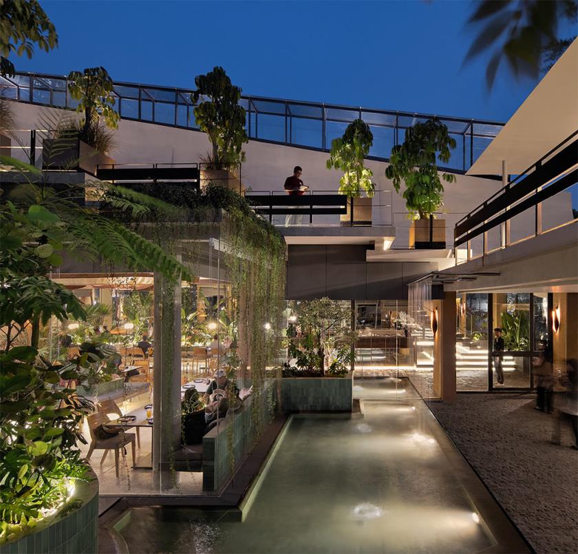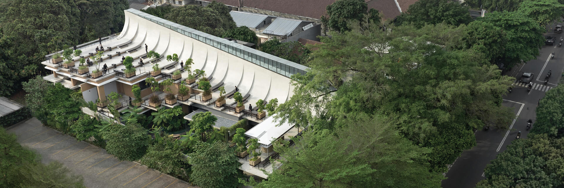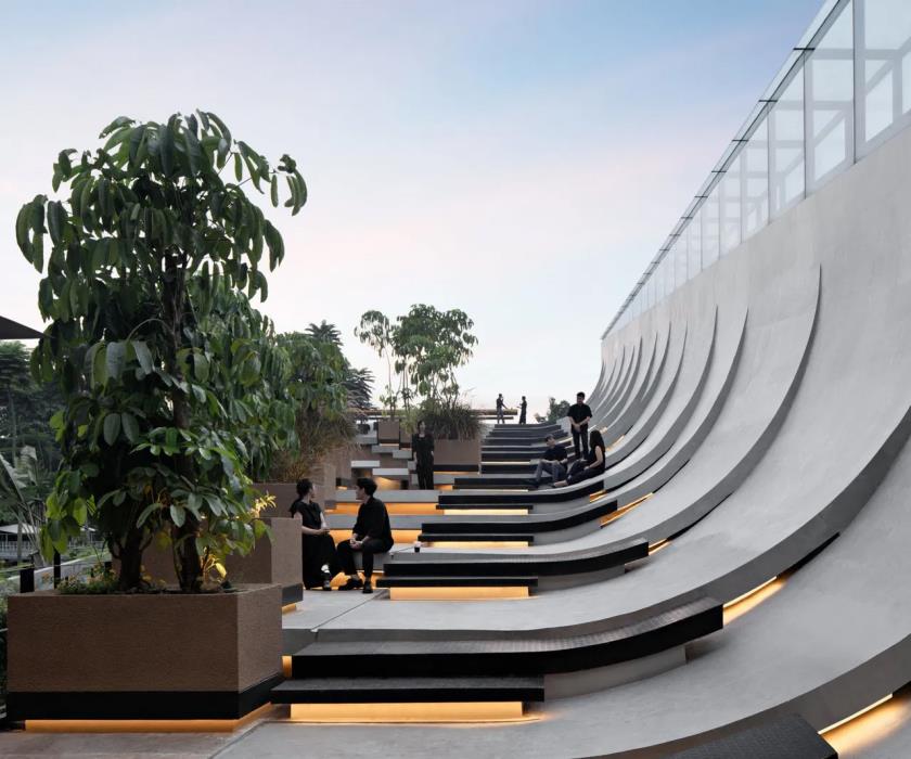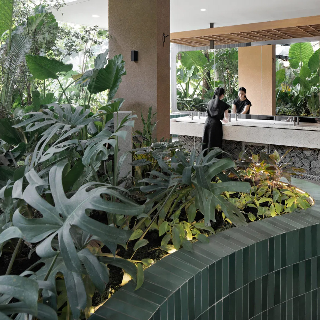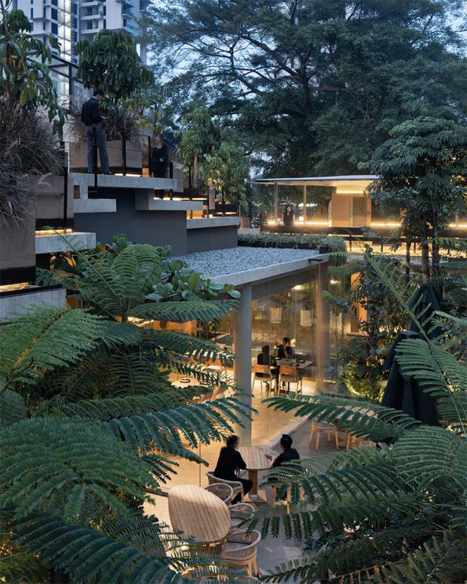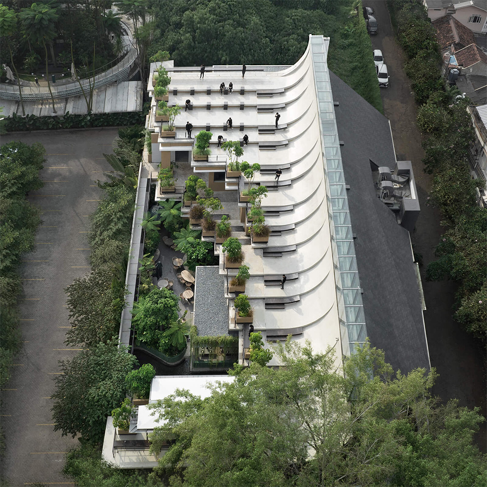 Situato in uno dei quartieri più dinamici della capitale indonesiana, questo progetto di circa 2.500 m² si presenta come un organismo stratificato, dove la distinzione tra dentro e fuori, tra sociale e privato, tra spazio commerciale e spazio pubblico si dissolve in una continuità percettiva e funzionale.