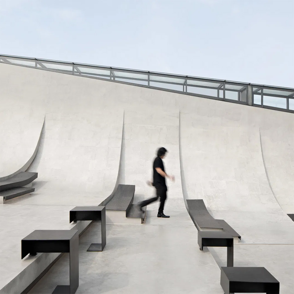 La luce gioca un ruolo centrale: l’apertura a nord-sud, le superfici piane e inclinate, le giunzioni tra interno ed esterno sono tutte modulate per catturare i raggi solari in modo morbido e diffuso. La luce non illumina semplicemente: plasma lo spazio, lo piega, lo stratifica, lo anima. È un elemento che definisce il carattere del luogo tanto quanto il programma funzionale.