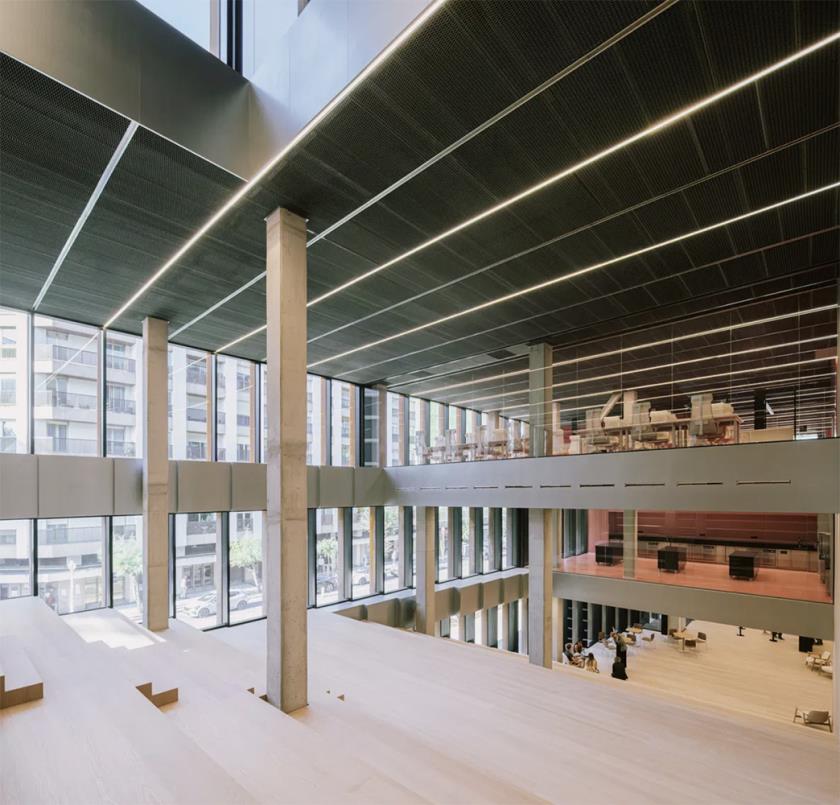 I dati tecnici di progetto riflettono questa flessibilità: la struttura è organizzata su più livelli a bassa altezza, con maglie modulari che consentono ampliamenti e riconfigurazioni future. Le grandi campate permettono spazi liberi da pilastri, ideali per ospitare funzioni diverse, mentre l'involucro è progettato per massimizzare illuminazione naturale e ventilazione incrociata. Le coperture ospitano sistemi di raccolta delle acque piovane e superfici coltivabili, integrando produzione agricola e gestione sostenibile delle risorse.