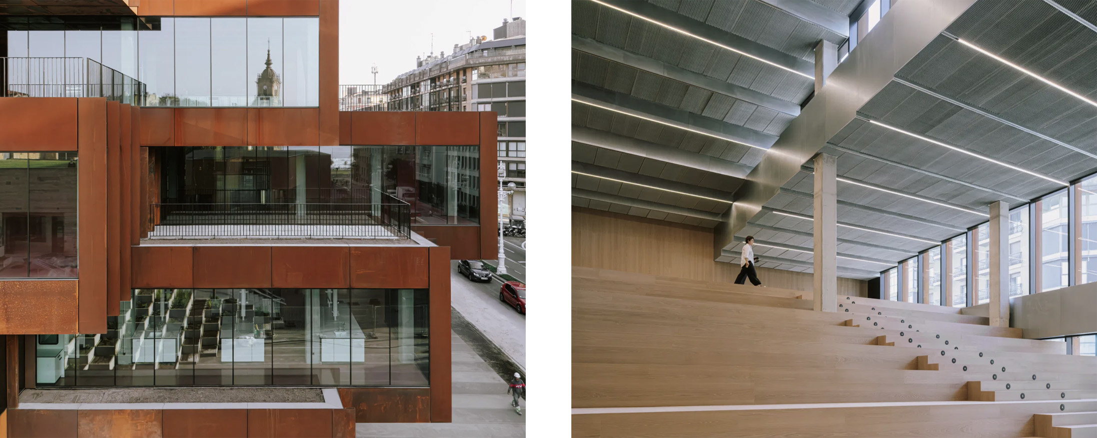 I materiali utilizzati rispecchiano l'attenzione di BIG per la sostenibilità e la riduzione dell'impatto ambientale. La struttura principale è pensata in legno lamellare a strati incrociati, combinati con elementi in acciaio per garantire grandi luci e flessibilità strutturale.