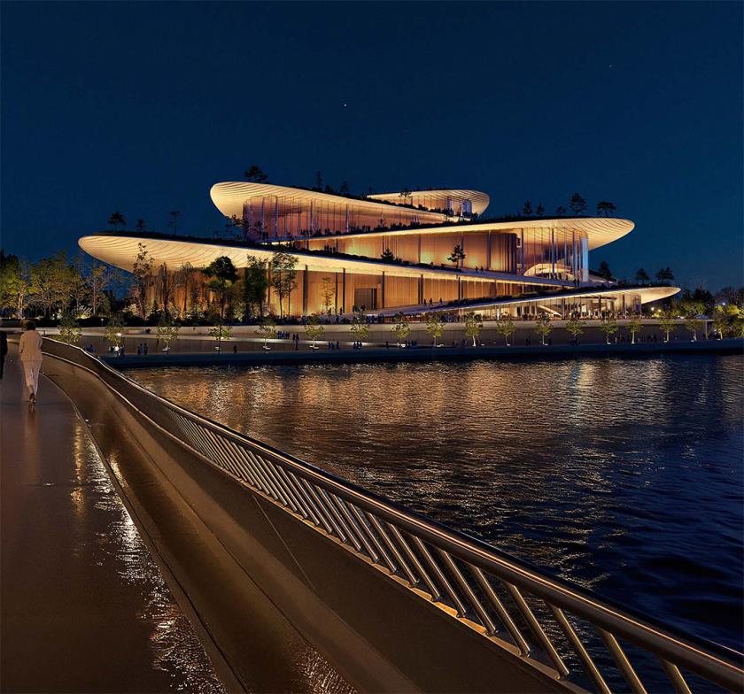 La giuria che ha assegnato il progetto ha sottolineato come la proposta sia una sintesi brillante tra funzionalità operistica e landmark urbano: una spirale di giardini sul tetto, piantati con alberi, arbusti e graminacee autoctone, offre un itinerario continuo su tutti i lati, con viste spettacolari sulla città, il porto e il fiume. Di notte, le terrazze illuminate dai bordi sembrano foglie che sbocciano, trasformando l’edificio in un fiore generoso che si apre alla comunità.