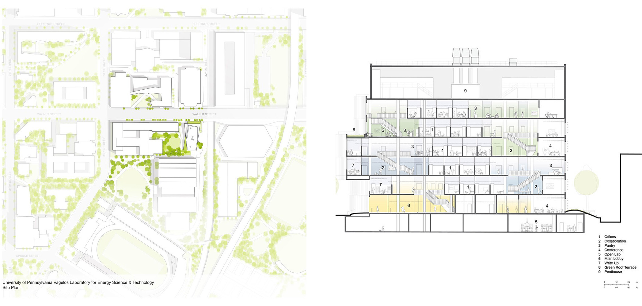 Il Vagelos Laboratory for Energy Science and Technology (VLEST), progettato dallo studio internazionale Behnisch Architekten , è un progetto che unisce ricerca d'avanguardia, design sostenibile e relazioni urbane aperte alla comunità accademica e cittadina.
