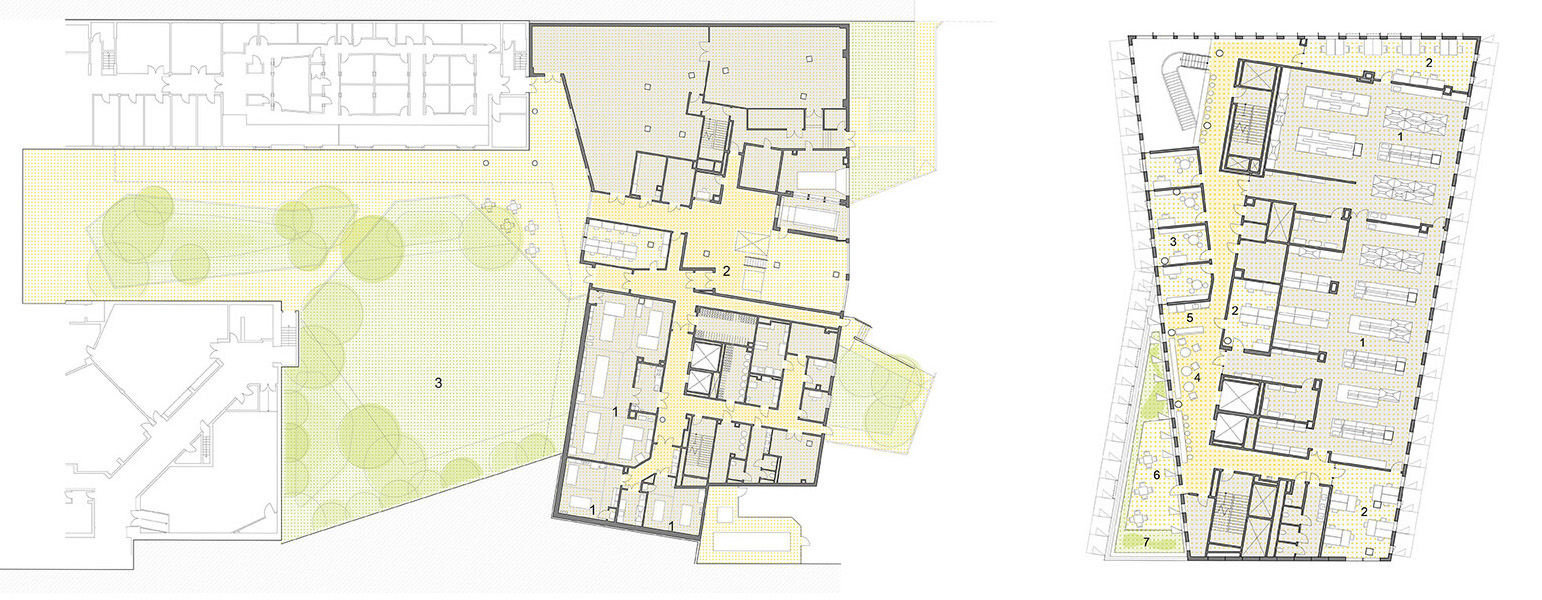 Un altro punto di forza del design è la gestione degli spazi esterni: l'edificio introduce una nuova corte interna paesaggistica con canali di ritenzione biologica e piante autoctone che non solo migliorano la gestione delle acque piovane, ma valorizzano l'esperienza quotidiana di studenti e ricercatori, offrendo un ambiente più verde e accogliente all'interno dell'ambiente urbano.