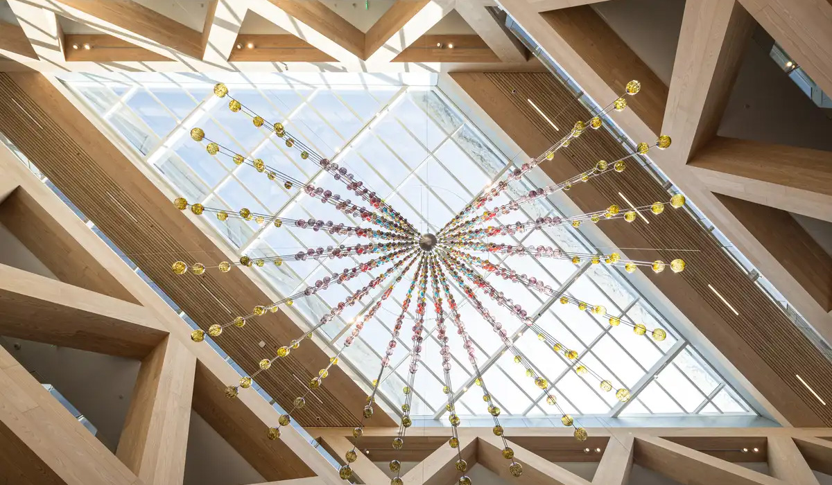 Le aree come l’Innovation Studio, la Quantum Library, l“Agora” e le aule modulabili diventano luoghi di incontro, sperimentazione, dibattito e divulgazione. In uno spazio sospeso a 30 piedi si libra l’installazione “Magnetic Field” di Damien Ortega, un’opera scultorea che richiama la magnetosfera terrestre attraverso anelli e sfere in vetro, offrendo un richiamo simbolico alla connessione fra scienza, arte e cosmo.