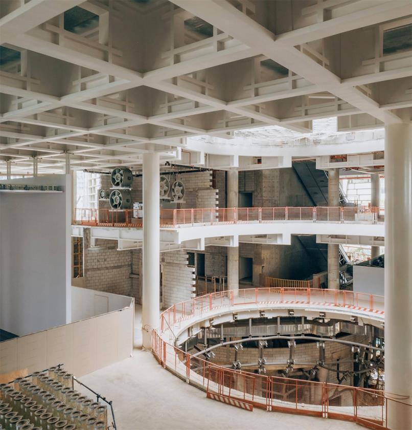 A livello architettonico, il Róng Museum è composto da cinque volumi principali disposti su diversi livelli, collegati da connessioni orizzontali e verticali che creano percorsi fluidi tra le aree espositive. Questi blocchi si elevano fino a circa 53 metri d’altezza, con gallerie sospese che sfruttano altezze variabili per ospitare opere di grande scala e installazioni immersive.