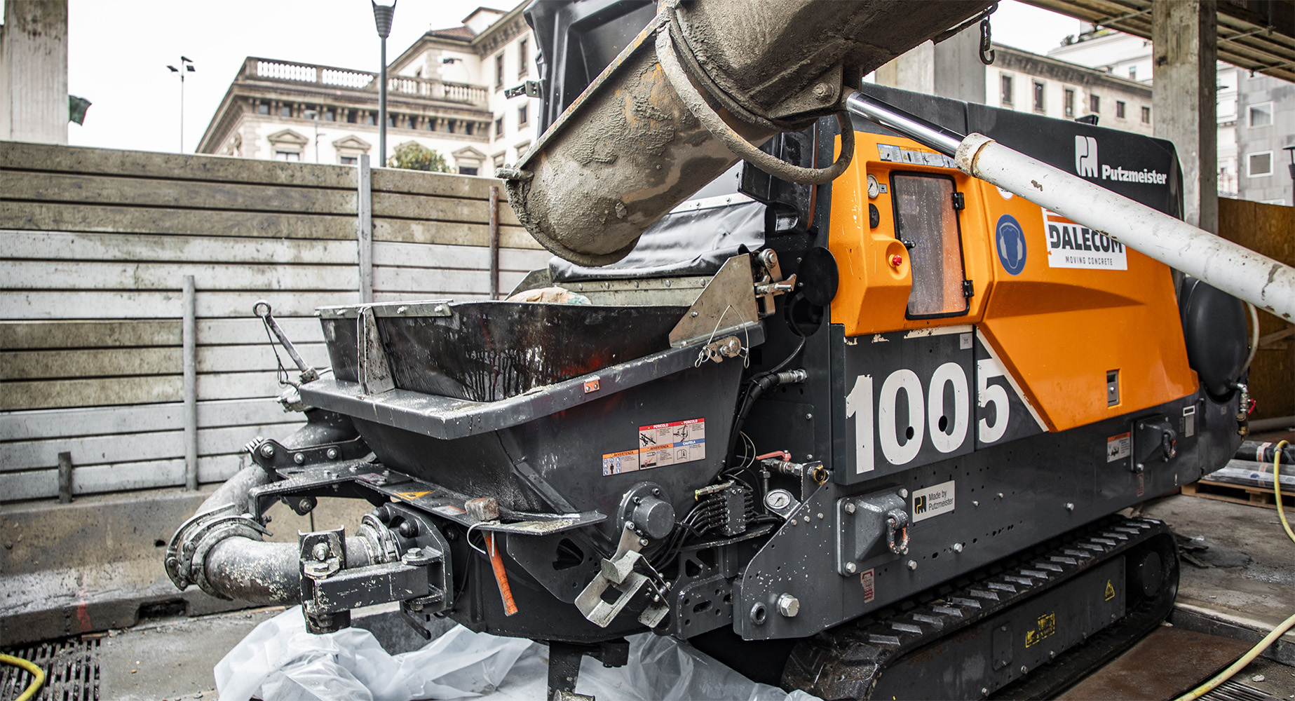 Ospiti della Dalecom di Paese (noleggiatore specializzato nei mezzi per distribuzione del calcestruzzo) che sta seguendo i getti dei calcestruzzi e della storica impresa milanese Grassi & Crespi, abbiamo visitato il cantiere, in cui il concetto di lavorare in spazi ristretti assume una valenza nuova, ai limiti estremi della fattibilità.