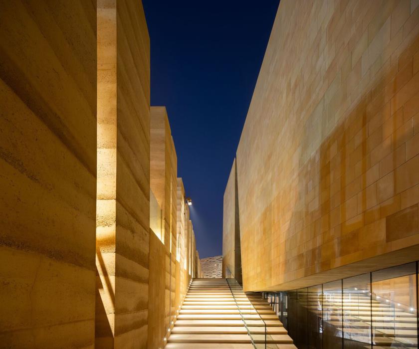 L’edificio non è solo spazio espositivo: è nodo urbano, centro di formazione, laboratorio e specchio delle ambizioni del Piano Saudi Vision 2030. In un’area antropizzata in trasformazione, DAF riscrive la relazione con la natura — materia viva del progetto — attraverso materiali, forme e spazi integrati. L’architettura si fa ponte tra memoria locale e proiezione globale, restituendo dignità e potenza a un paesaggio fragile eppure carico di storia.