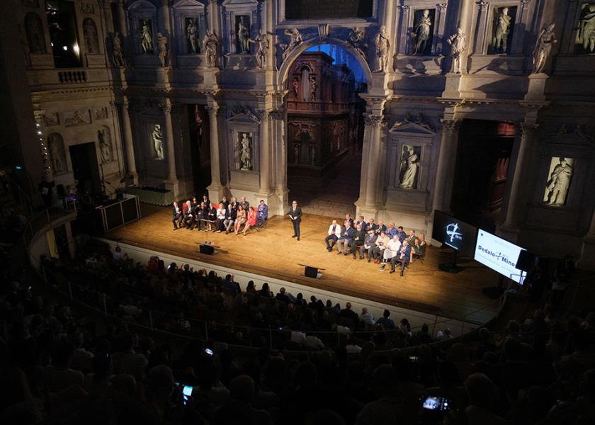 La cerimonia, tenutasi nel suggestivo Teatro Olimpico di Vicenza, ha voluto essere omaggio al rapporto secolare tra progettista e committente, nei luoghi dove la materia e l’idea si intrecciano.