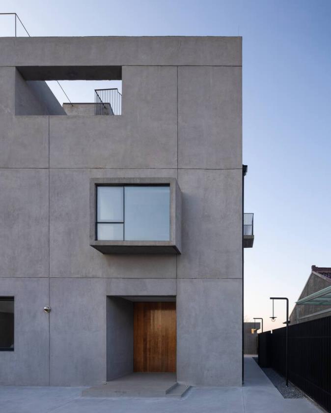 La forma complessiva rispetta le proporzioni e l’altezza delle abitazioni circostanti; una struttura a telaio su tre piani che si dissolve attraverso corridoi visivi e aperture calibrate, rompendo il paradigma del muro di cortile chiuso. Al posto di barriere solide, l’architettura utilizza muri bassi e alberi per definire i confini, permettendo al cortile di fondersi naturalmente con il tessuto agricolo circostante e creando allo stesso tempo spazi di privacy e protezione.