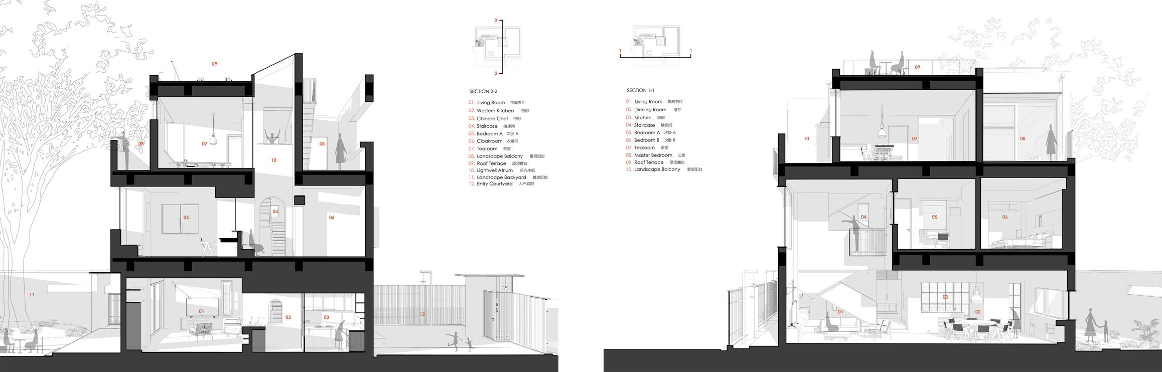 - Il “Soil Layer” è caratterizzato da pavimenti in pietra lavata che si estendono nel cortile, dissolvendo il confine tra interno e esterno.
