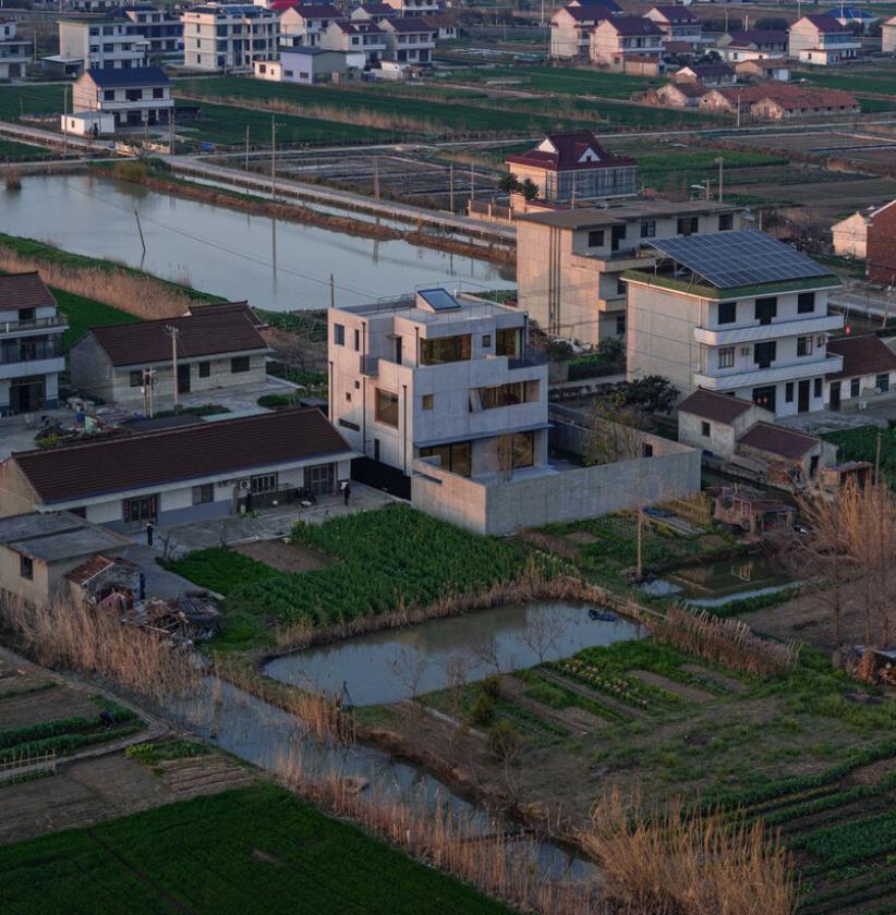Situato vicino alla costa orientale, dove il fiume Yangtze sfocia verso il Mare Cinese Orientale, il sito racconta una geografia di vento, mare e fertili pianure. Qui, dove un tempo sorgeva un tipico nucleo di villaggio di pescatori circondato da turbine eolica e paesaggi di maree, East Courtyard si inserisce rispettando la scala e il tessuto del luogo, reinventando l’abitazione con una sensibilità moderna senza perdere la semplicità rurale che contraddistingue gli insediamenti tradizionali.