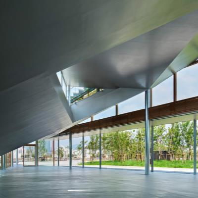 Alla base del progetto una duplice esigenza: da una parte il rispetto di un Masterplan che richiedeva la continuità dello spazio pubblico dalle colline al fiume (direzione nord-sud), con conseguente divisione della massa dell'edificio in due volumi lineari; dall’altra, la necessità che l’edificio non avesse cesure funzionali fra le sue componenti doveva operare come un'unica entità, implicando che i due volumi lineari immaginati dovessero essere collegati in direzione est-ovest.