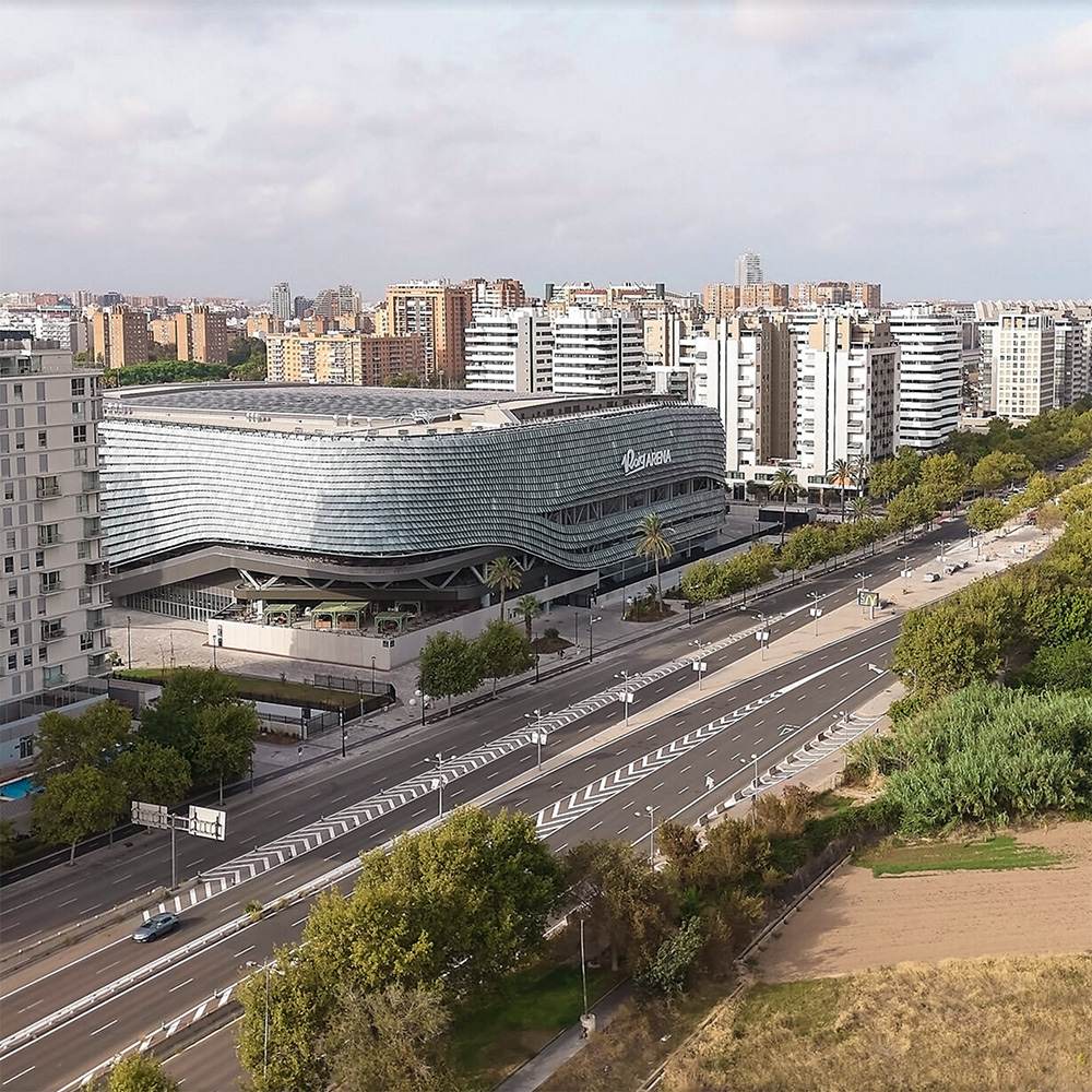 Promossa da Licampa 1617, la società di Juan Roig (miliardario che vagamente ricorda Freddy Krueger interpretato dal mitico Roberte Englund), attivo nel segmento della grande distribuzione e padrone del Valencia Basket. L'arena è parte di una più ampia strategia di rigenerazione che coinvolge spazi pubblici, aree verdi e nuove connessioni pedonali. Il progetto si inserisce in un contesto urbano complesso, assumendo il ruolo di soglia tra quartieri e di polo attrattivo per la città contemporanea