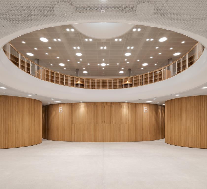 La componente materica gioca un ruolo decisivo anche nella definizione dell’atmosfera complessiva. Il calcestruzzo strutturale si alterna al legno e al vetro per costruire un equilibrio tra solidità e leggerezza, tra protezione e apertura. Questa dialettica riflette la filosofia dello studio, che negli ultimi anni ha sviluppato una ricerca sempre più orientata alla dimensione sensoriale e percettiva dell’architettura, anche in ambiti funzionali complessi come la sanità.