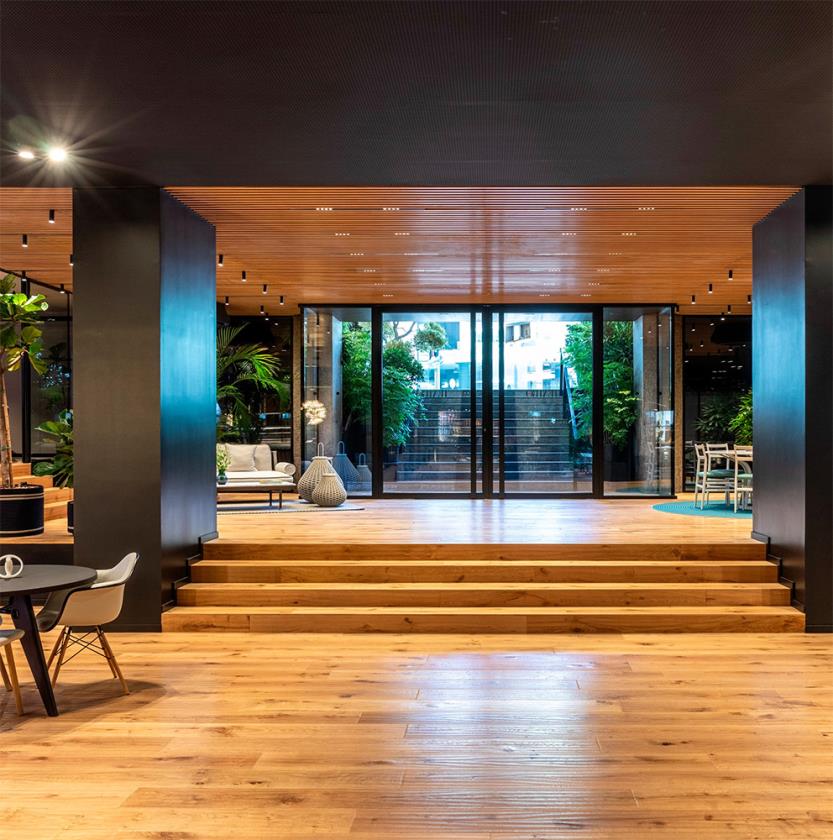 La sequenza degli spazi è pensata come un copione. L’ingresso su Michel Bustros Street accoglie con un Indoor Garden, preludio vegetale e luminoso che introduce al foyer.