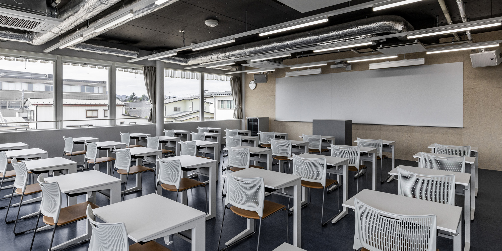 Particolare attenzione è rivolta all'auditorium, pensato non solo come spazio per lezioni e cerimonie istituzionali come la "Capping Ceremony", ma anche come ponte psicologico verso la realtà clinica: le viste deliberate verso l'adiacente ospedale di Shonai e la piazza antistante suggeriscono un dialogo continuo tra formazione e pratica professionale.