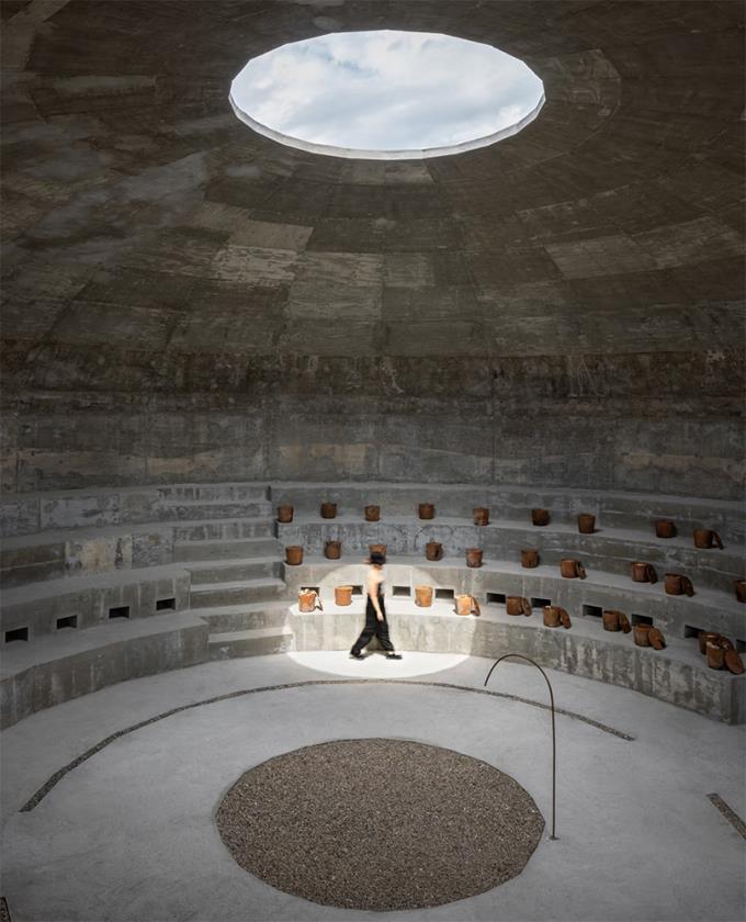 Il padiglione non è concepito come semplice sala espositiva, ma come macchina di relazione con il paesaggio, dove l’artista — così come il visitatore — può confrontarsi con la propria presenza nel mondo. Le pareti scavate rivelano stratificazioni materiche che parlano di terra, tempo e sedimentazione culturale; la cupola, invece, suggerisce un abbraccio contemplativo, una camera unica in cui si svolgono incontri, dialoghi, workshop, performance site-specific o momenti di coesione comunitaria all’interno della residenza.
