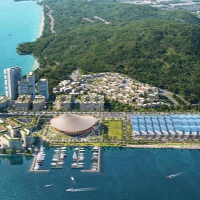 Con una superficie di 3,5 ettari, il design del complesso trae ispirazione dall'ambiente circostante, incorporando al contempo la forma distintiva del suo campo pratica. La forma audace e spigolosa dell'edificio rispecchia il movimento e il dinamismo associati al golf, riflettendo al contempo la natura frenetica della città circostante.