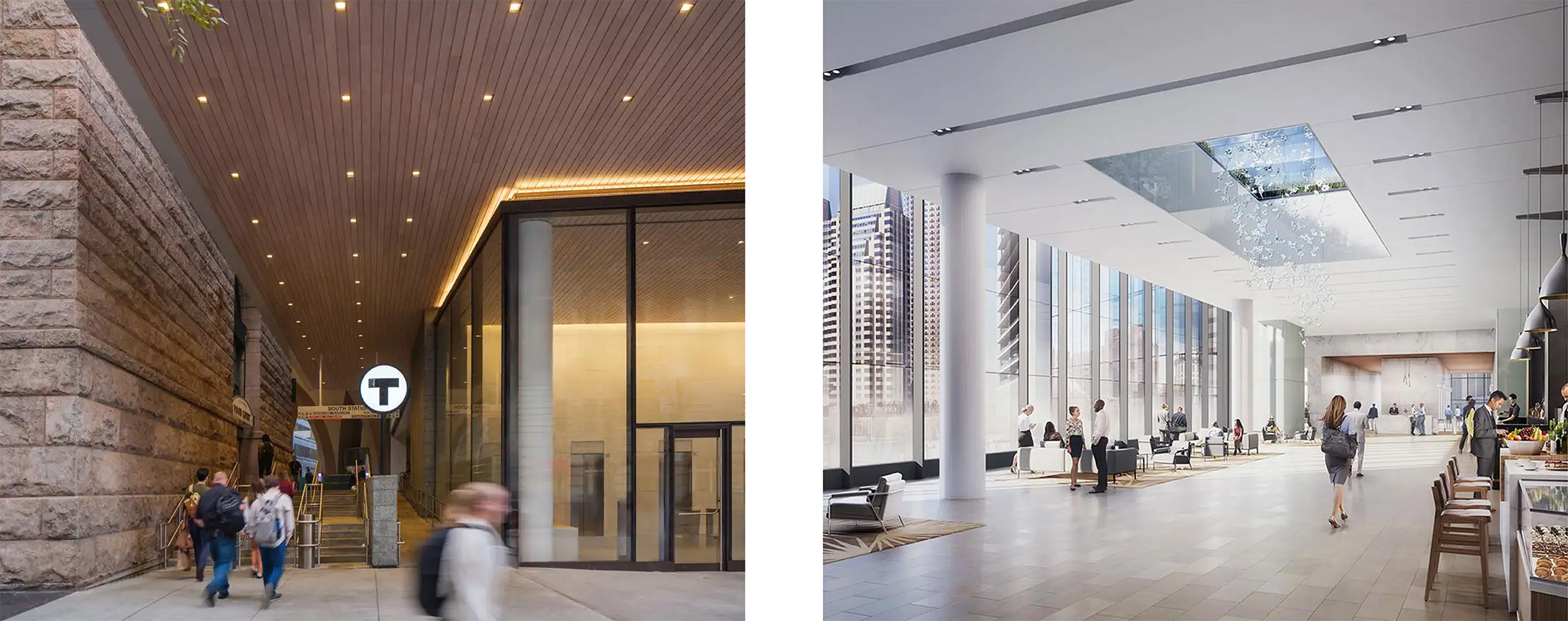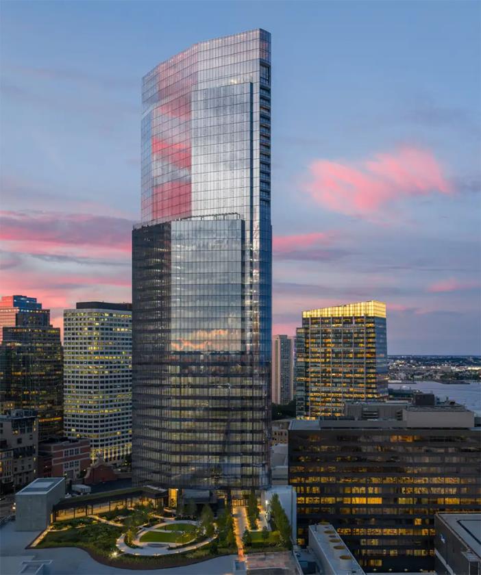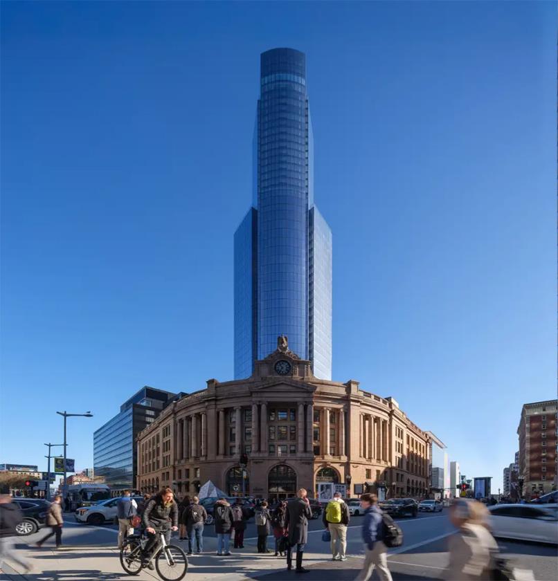 Ma il segno più evidente della rinascita svetta verso l’alto: una torre di 51 piani, che diventa nuova icona dello skyline bostoniano. Con i suoi 63.000 metri quadro di uffici premium, 166 residenze Ritz-Carlton, ristoranti, spazi retail e un parco pensile di un acro, l’edificio intreccia il vocabolario della trasparenza e della leggerezza con la massa solida del vecchio headhouse Beaux-Arts, generando un dialogo inedito tra epoche e linguaggi. Le facciate vetrate moltiplicano riflessi e prospettive, offrendo viste che abbracciano la città e il porto, quasi a sancire un nuovo patto visivo con l’orizzonte.