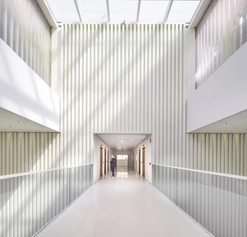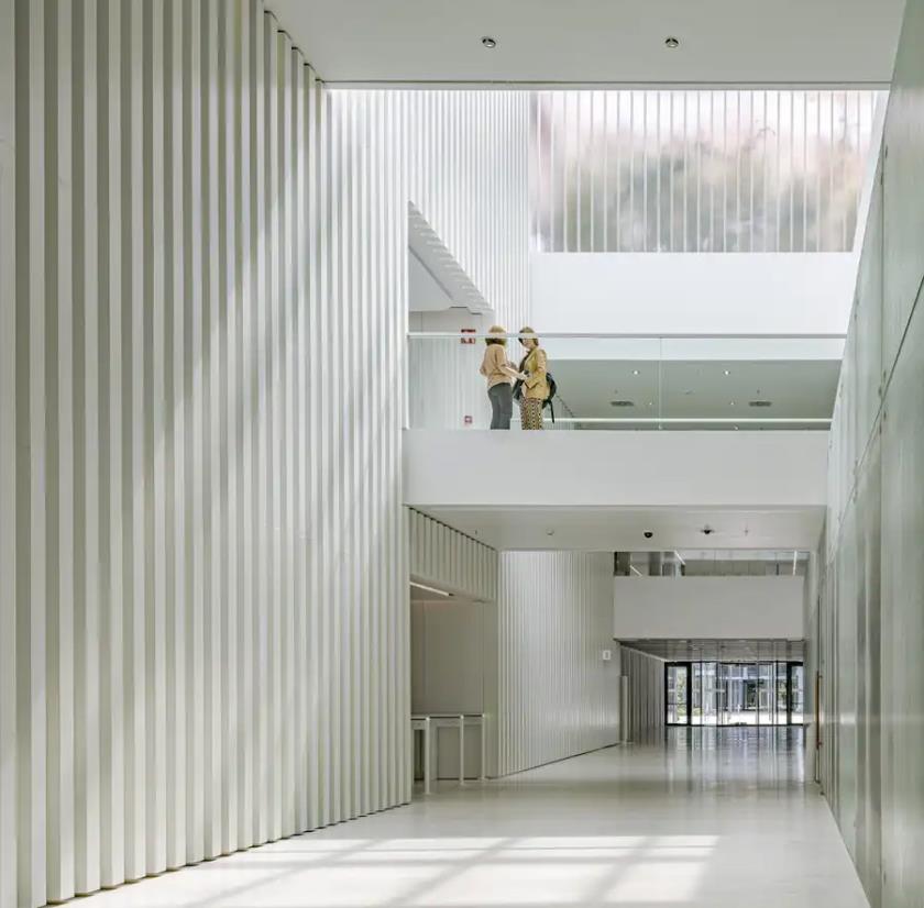 L’intervento architettonico ha previsto la ristrutturazione profonda di più volumi esistenti, integrando superfici vetrate ad alte prestazioni, facciate ventilate e sistemi di ombreggiamento dinamico. Le nuove aperture consentono un’apportazione di luce naturale fino al 60% superiore rispetto alla struttura precedente, riducendo drasticamente l’uso di illuminazione artificiale nelle ore diurne. La scelta di materiali include calcestruzzi a basso contenuto di clinker, acciaio riciclato fino al 75% e legni certificati FSC, riducendo l’impronta di carbonio dell’intervento di oltre il 30% rispetto a un progetto tradizionale.