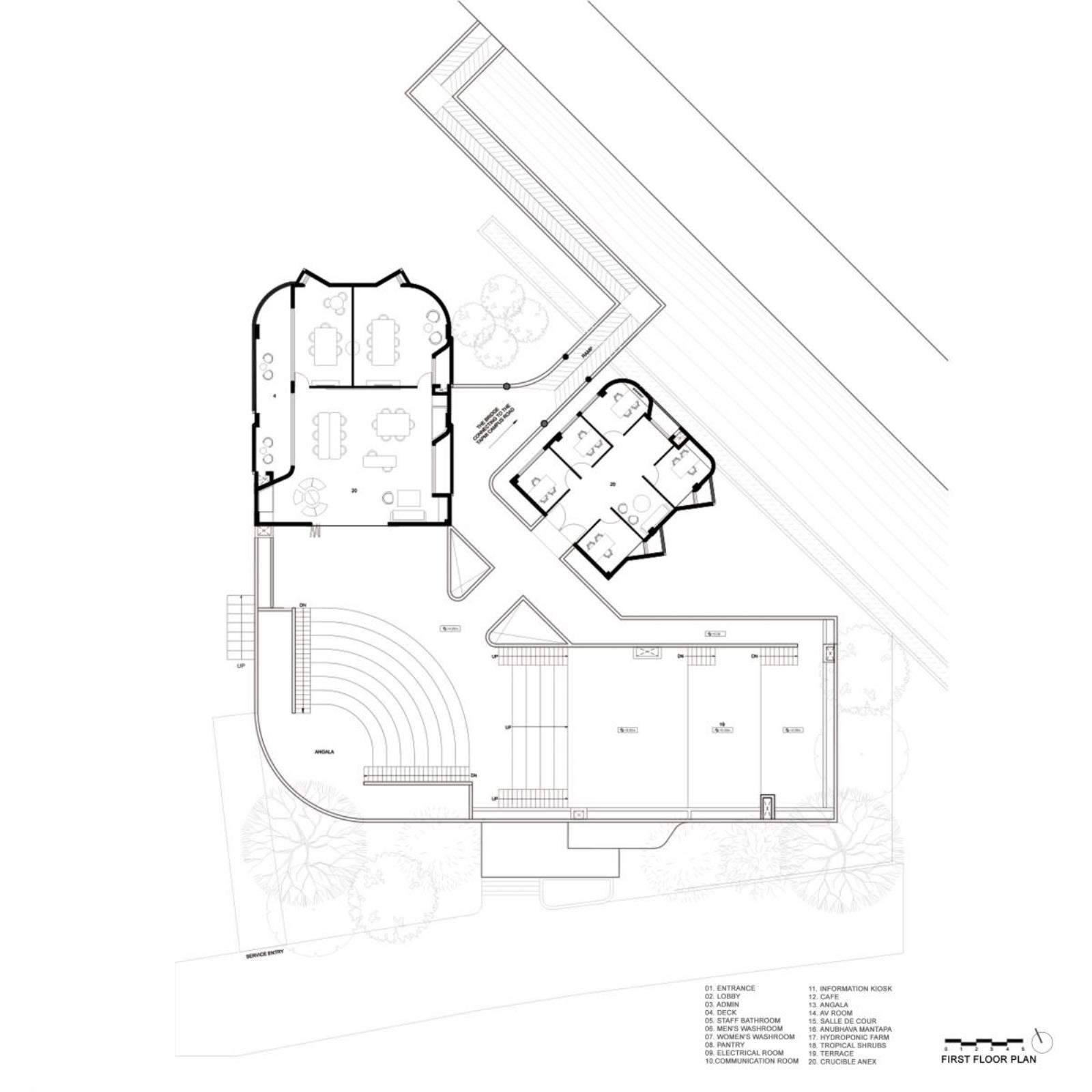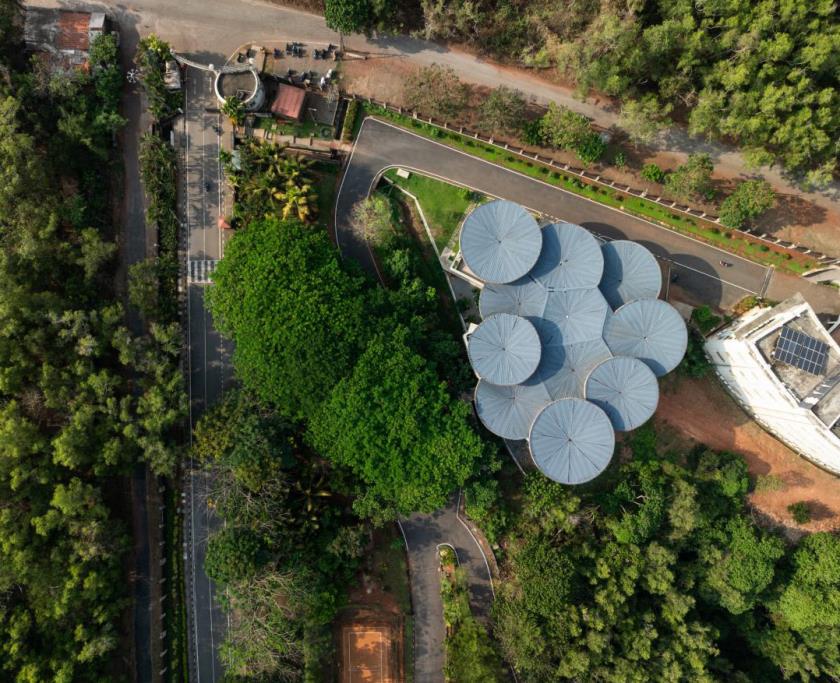 Progettato da The Purple lnk Studio, il complesso occupa una superficie di circa 1.145 m2 e si inserisce in un contesto collinare densamente vegetato, all'interno di un campus di oltre 40 acri. La sua posizione sopraelevata non diventa mai gesto monumentale, ma piuttosto occasione per costruire relazioni visive e fisiche con il paesaggio.