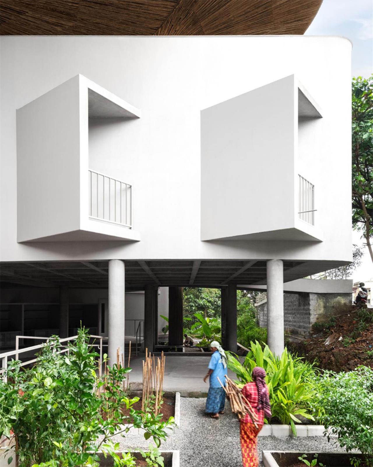 In un contesto caratterizzato da forti piogge monsoniche, alta umidità e temperature elevate, il progetto affronta il tema climatico non come problema da neutralizzare, ma come materiale progettuale. L'orientamento dell'edificio, le profonde sporgenze, i vuoti interni e le superfici ombreggiate riducono il carico termico e favoriscono la ventilazione trasversale, limitando la dipendenza da sistemi meccanici.