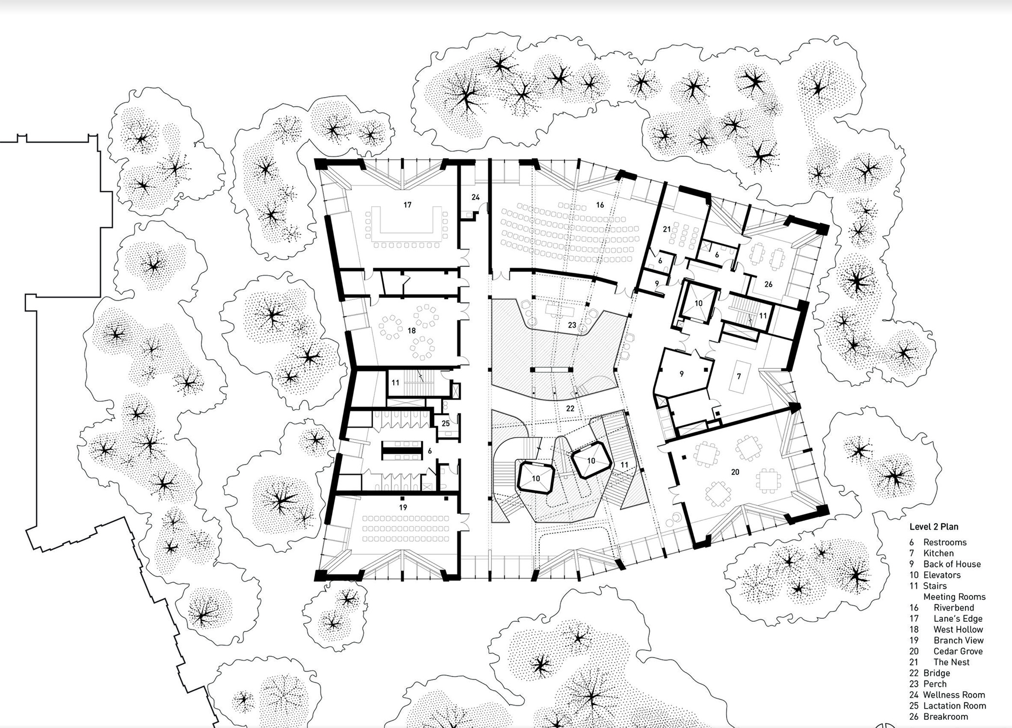 Il Treehouse non è soltanto un centro conferenze, ma un nodo strategico dell’Enterprise Research Campus, progettato per connettere ricerca, industria e comunità. Gli spazi aperti al pubblico dialogano con la città di Allston, mentre le sale superiori sono dedicate ad attività accademiche e conferenziali internazionali.
