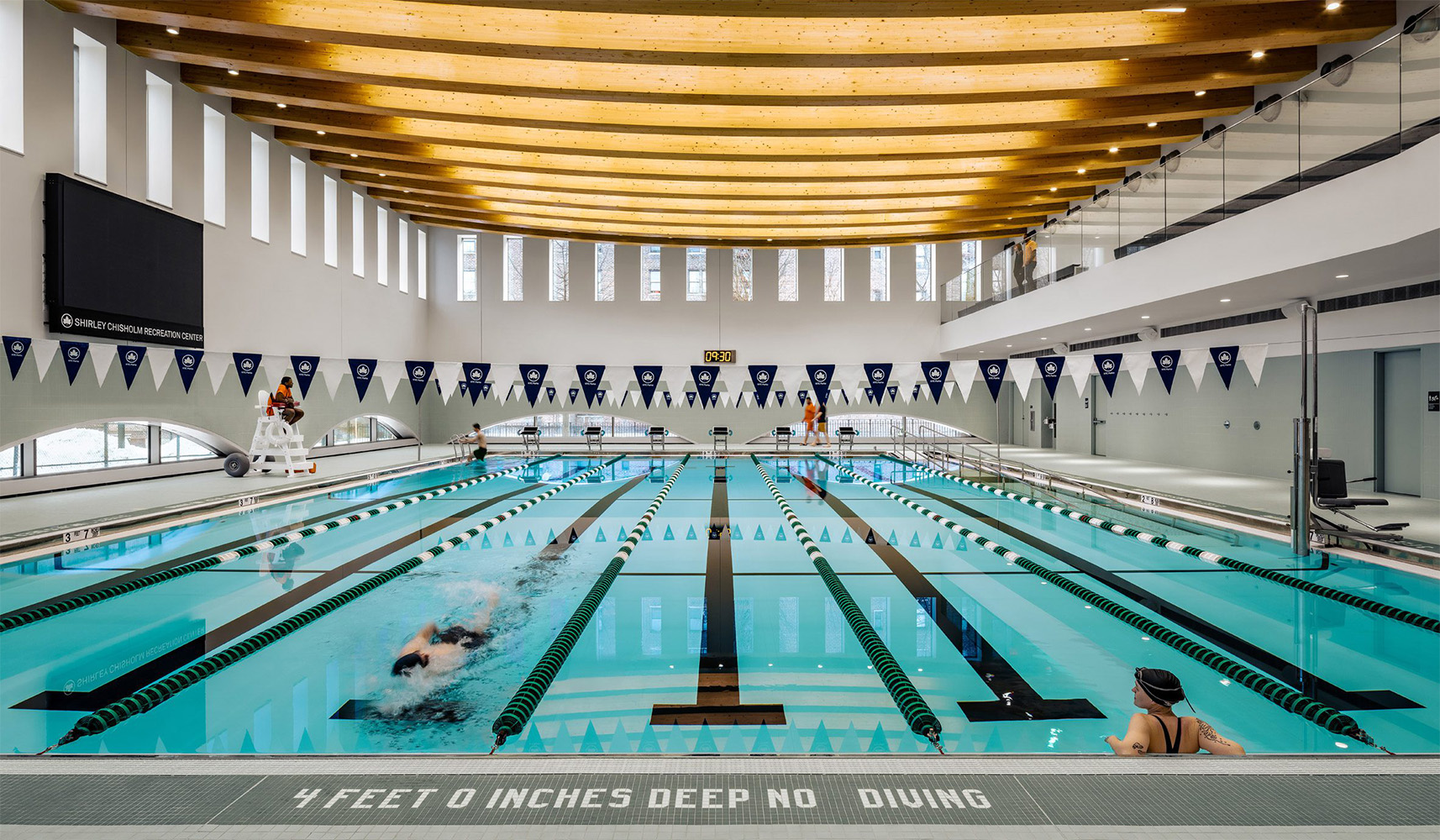 Dal punto di vista costruttivo e ambientale, il centro punta alla certificazione LEED-NC Gold, grazie a una involucro ad alte prestazioni, sistemi di riscaldamento e raffrescamento completamente elettrici, insieme all’uso di legno massiccio in spazi umidi come la piscina per coniugare performance e sostenibilità. Il progetto ha inoltre superato gli obiettivi per la partecipazione di imprese guidate da minoranze e donne (M/WBE), riflettendo un impegno sociale attivo anche nelle fasi di design e costruzione.