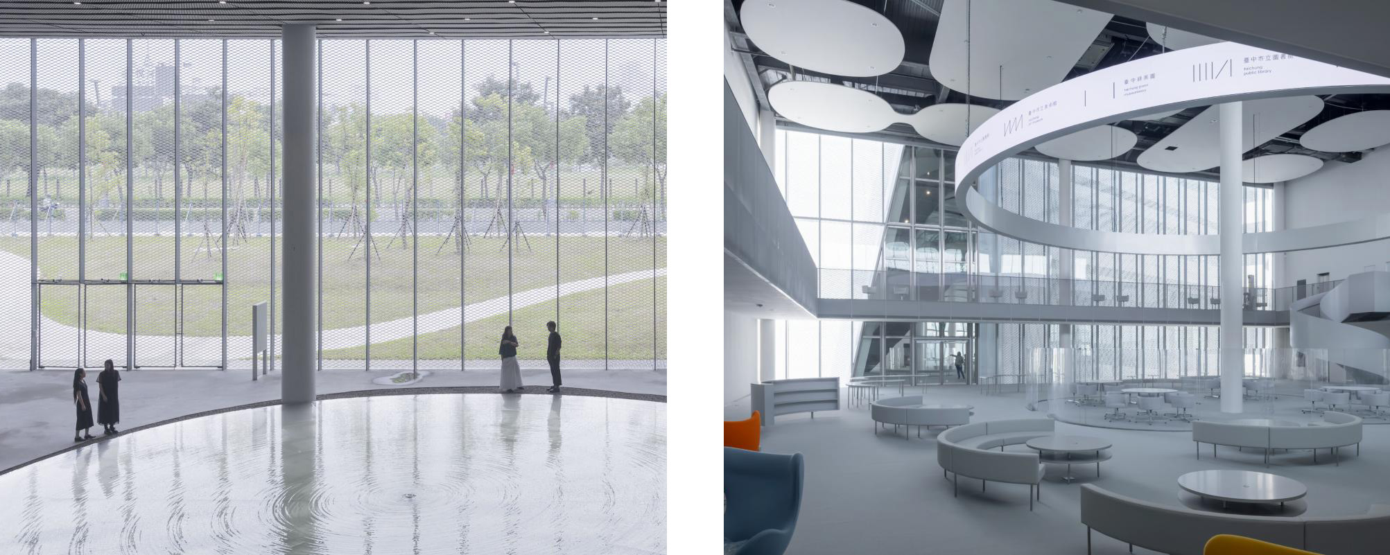 Accanto alle gallerie d'arte, la Taichung Public Library offre un ambiente luminoso e accogliente per la lettura, con zone dedicate a bambini, adolescenti e aree digitali capaci di ospitare oltre un milione di risorse fisiche e digitali. Elementi come i mobili e gli scaffali "a fiore" e i sistemi integrati di climatizzazione riflettono un approccio progettuale che coniuga estetica e funzionalità contemporanea, mentre i numerosi accessi e percorsi interni permettono di muoversi tra le funzioni senza soluzione di continuità.