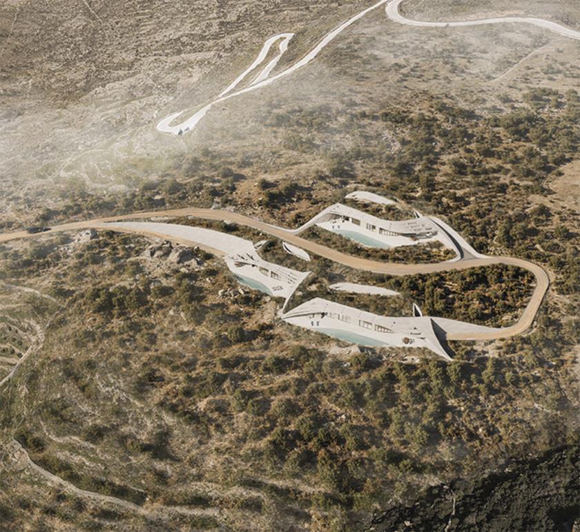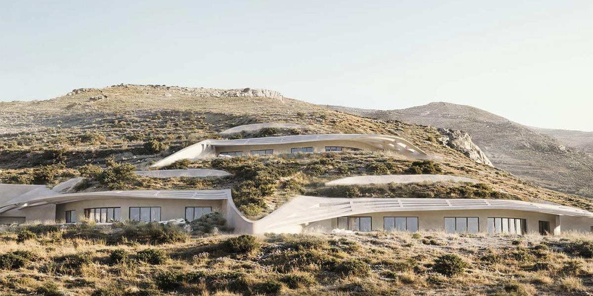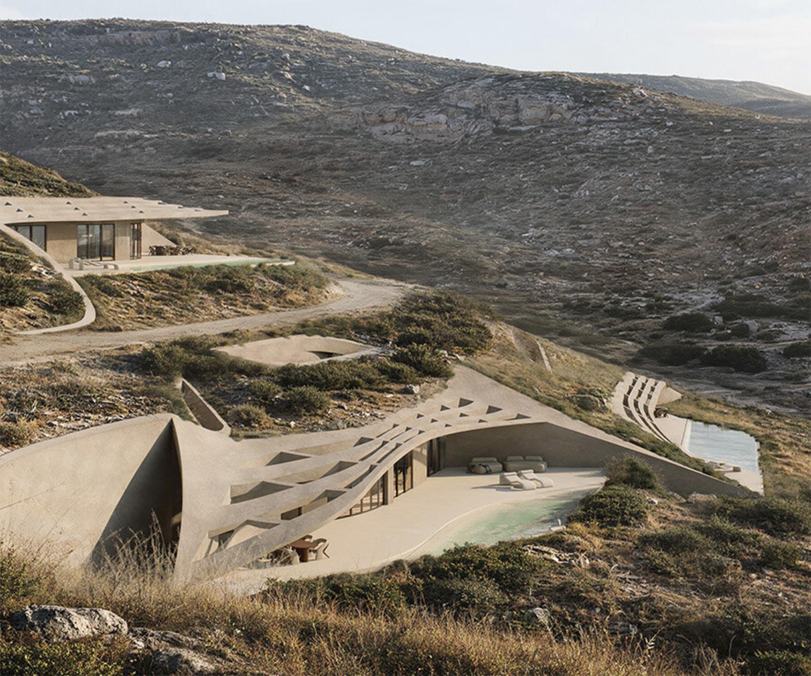 L’intervento, a firma dello studio greco The Hive Architects si sviluppa lungo un pendio roccioso affacciato sul mare, articolando una serie di unità abitative che non emergono come oggetti isolati, ma si innestano nel terreno seguendone le curve. Il risultato è una composizione che sfuma i confini tra naturale e artificiale, trasformando l’architettura in una prosecuzione del paesaggio.
