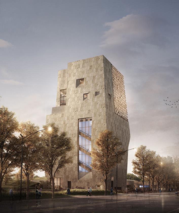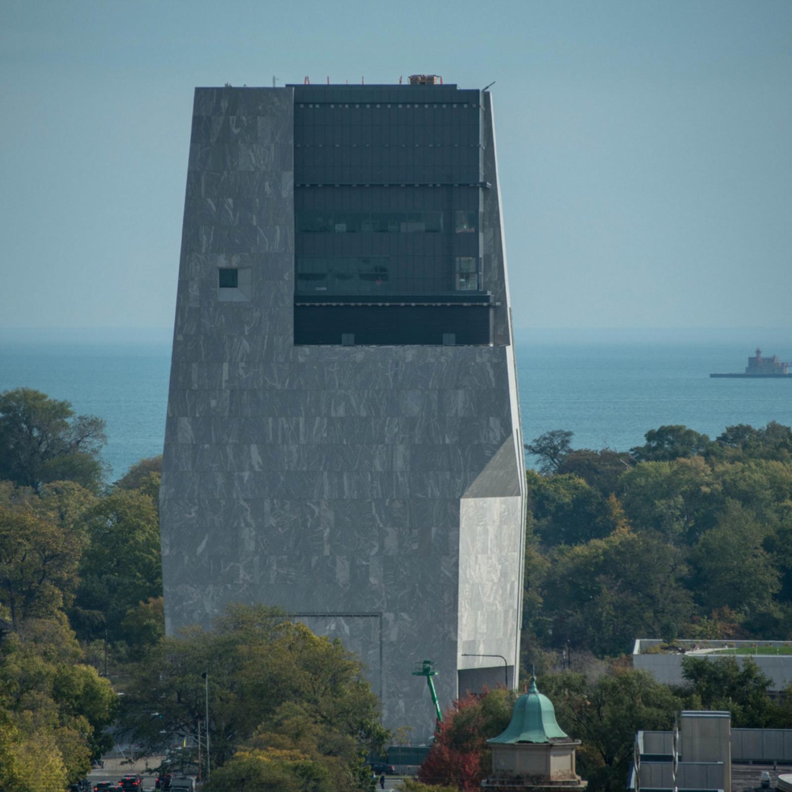 La torre ospita il museo dedicato alla presidenza di Barack Obama e rappresenta il cuore simbolico dell’intero progetto. Il volume si sviluppa verticalmente con superfici quasi prive di finestre, una scelta dettata sia da esigenze museografiche sia da una precisa intenzione narrativa: accompagnare i visitatori in un percorso ascensionale attraverso la storia politica e sociale degli Stati Uniti contemporanei.