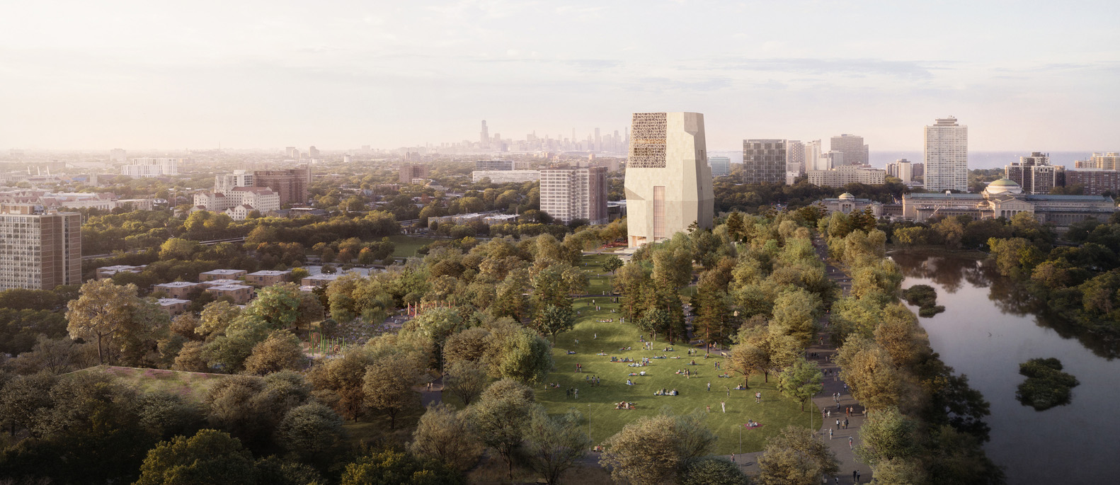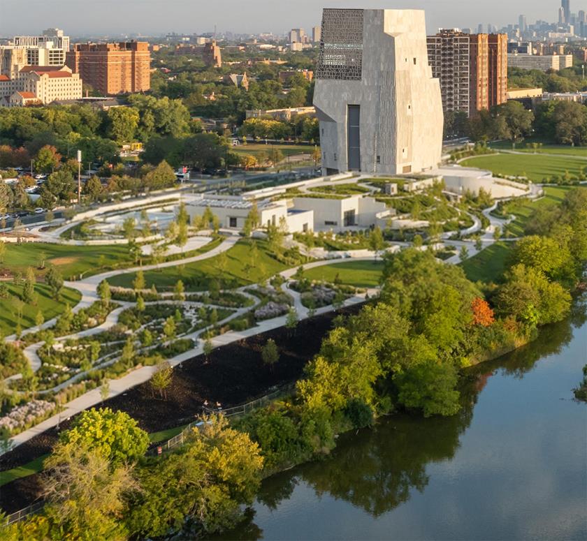 L’Obama Presidential Center si inserisce nel contesto paesaggistico di Jackson Park, un grande parco progettato alla fine dell’Ottocento da Frederick Law Olmsted per l’Esposizione Colombiana del 1893.