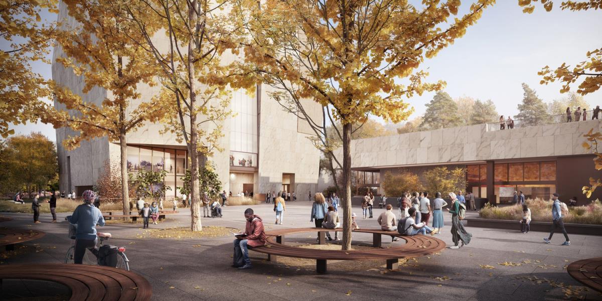 L’architettura di Tod Williams Billie Tsien interpreta questa ambizione attraverso un linguaggio monumentale ma allo stesso tempo accessibile. Il campus, immerso nel paesaggio di Jackson Park, diventa un luogo dove storia e futuro si incontrano.