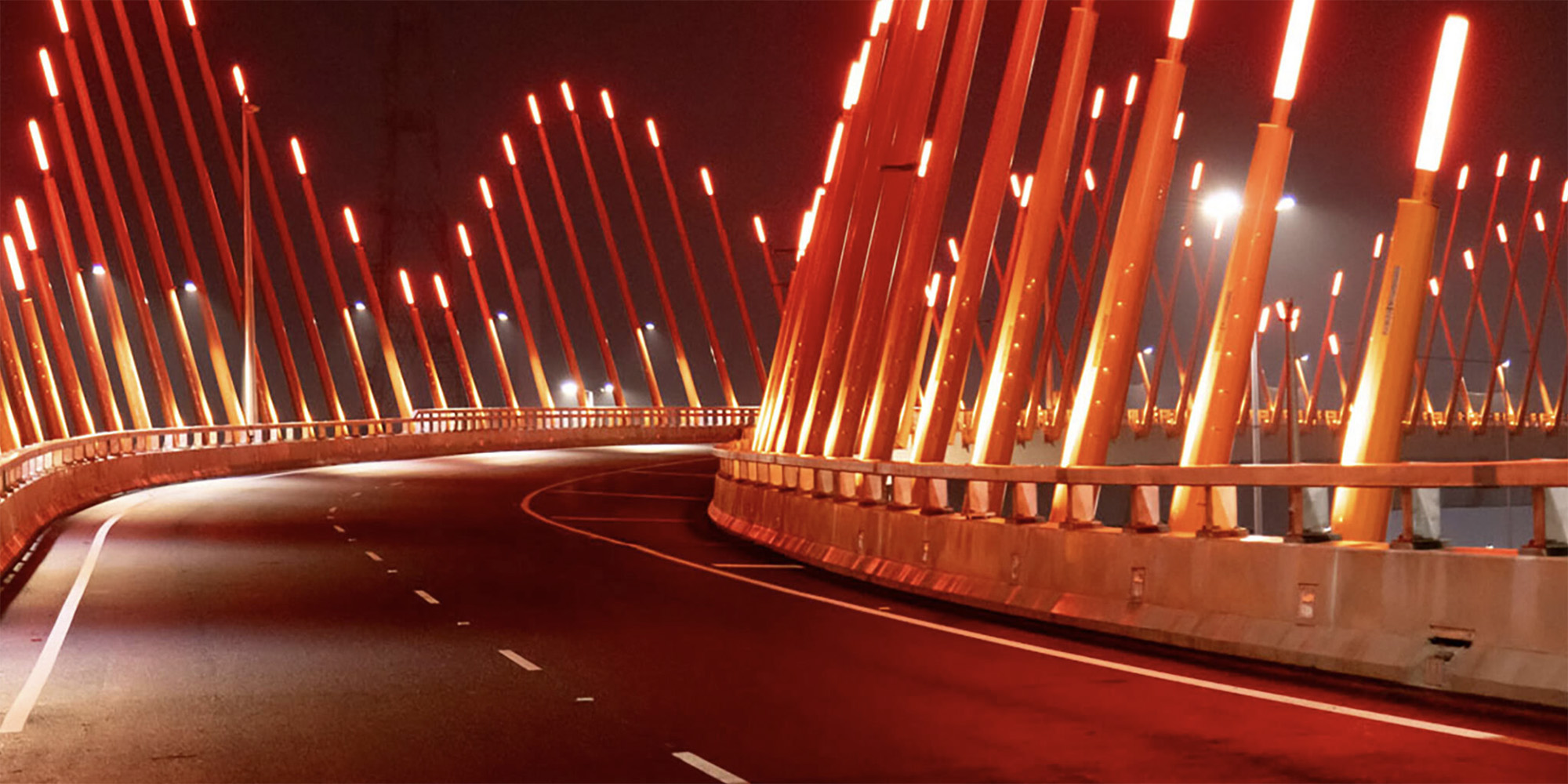 Le strutture assumono inoltre un valore performativo: l'illuminazione pensata per il tunnel genera un effetto filtrato che favorisce comfort visivo e sicurezza percettiva, mentre le ombre proiettate dalle forme sulla superficie stradale accompagnano gli utenti in un'esperienza di transito coinvolgente e dinamica.