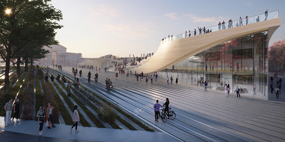 Il terminal dei trasporti pubblici sarà situato sul lato occidentale di Station Square. Il terminal è progettato come un paesaggio con un anfiteatro all'aperto che fungerà da luogo di ritrovo pubblico e sede di spettacoli culturali nel parco.