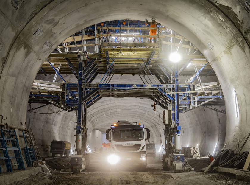 Il sistema MR 4.0, infatti, ha un sistema di livellamento laser automatico, che mantiene la planarità trasversale della cassaforma, mentre segue le pendenze longitudinali previste dal tracciato della galleria.