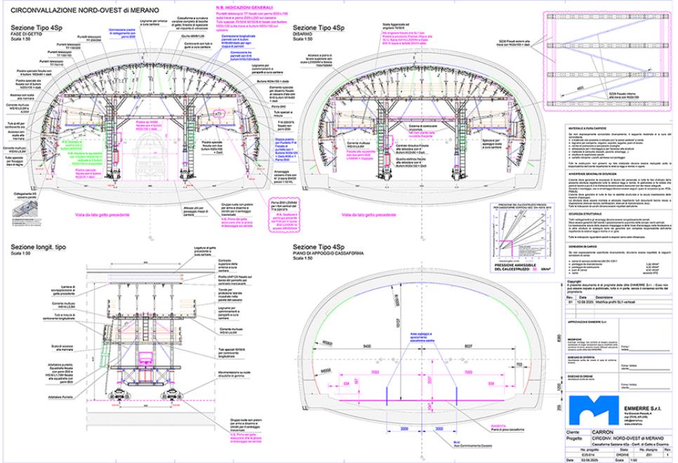 Approfondiamo le caratteristiche delle cassaforme Emmerre, impiegate in cantiere a Merano, direttamente con il direttore tecnico dell’azienda, Roberto Roberto , professionista con importante background tecnico nel settore, maturato anche prima di fondare Emmerre con il socio Michele Mancini : “Le nostre cassaforme a raggio variabile (che possono gestire anche configurazioni policentriche) sono progettate per adattarsi a gallerie con geometrie non standard o con variazioni longitudinali della sezione”.