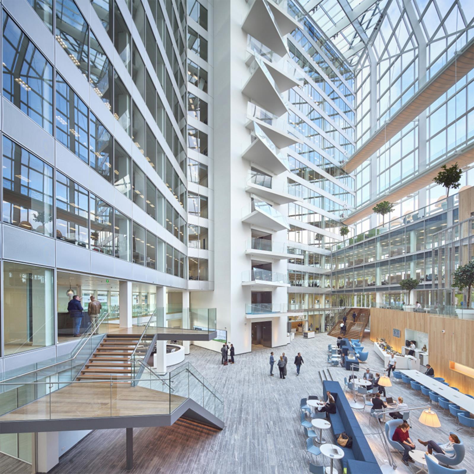 L’edificio direzionale The Edge, sviluppato da OVG Real Estate, è spesso citato come uno degli uffici più sostenibili al mondo. Qui l’isolamento termico non è solo materiale, ma parte di un ecosistema digitale integrato.
