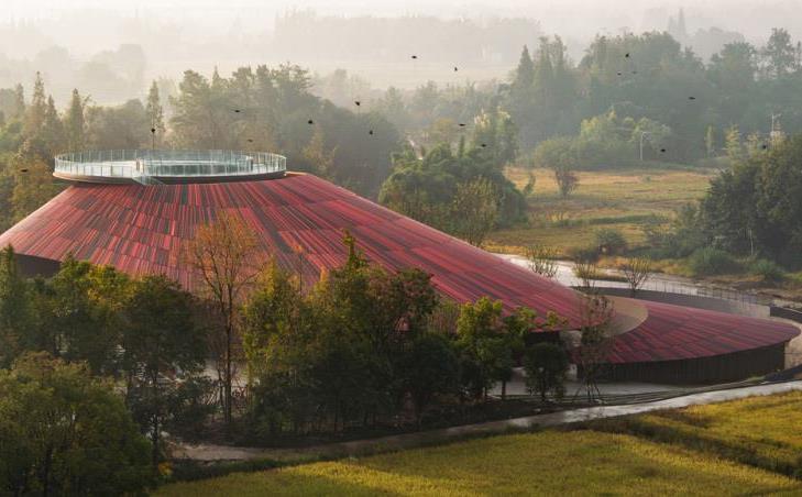 Il Douban Museum di CSWADI a Chengdu fonde architettura sotterranea, tetti ispirati alle tradizioni locali e materiali innovativi in un museo immerso nel paesaggio agricolo