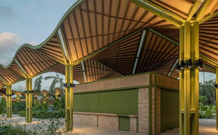 106Un mercato che fa da albero ombroso, crocevia di mestieri, natura e architettura resiliente nel cuore dello Yucatán.